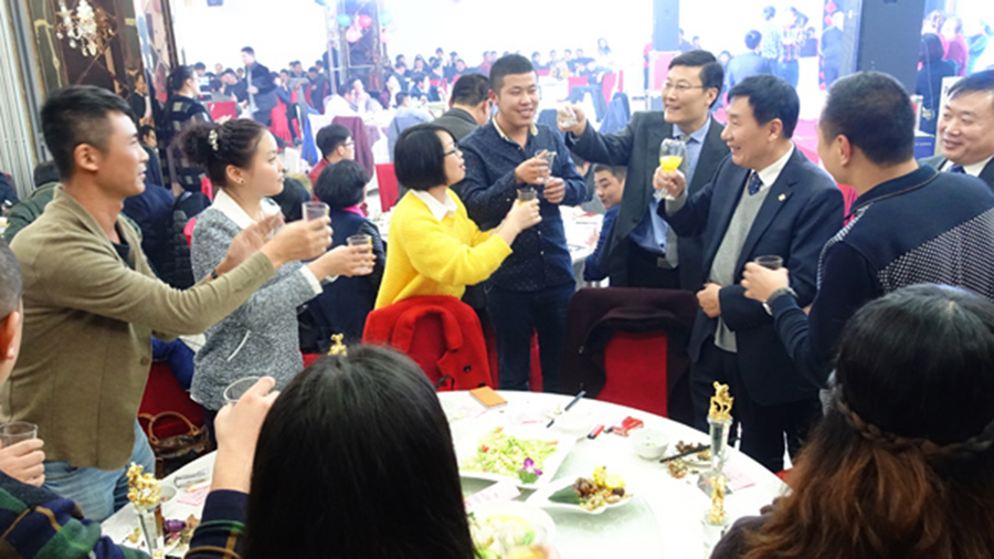 在聯(lián)歡會間,李永安董事長攜公司高管層向德源員工敬酒并送上紅包,感謝各位員工為公司發(fā)展所付出的努力?! 。ㄊ袌霾浚?/p>